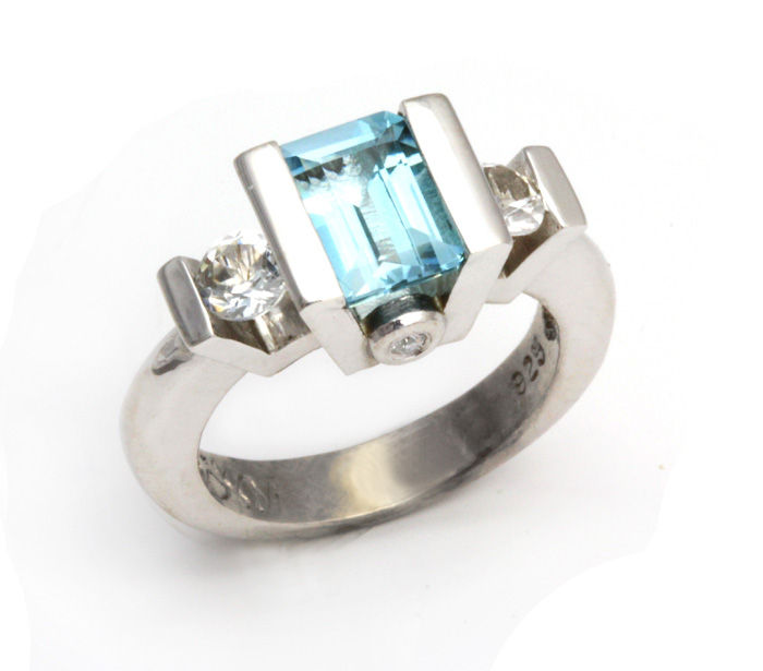Blue Topaz Filigree Channel Ring